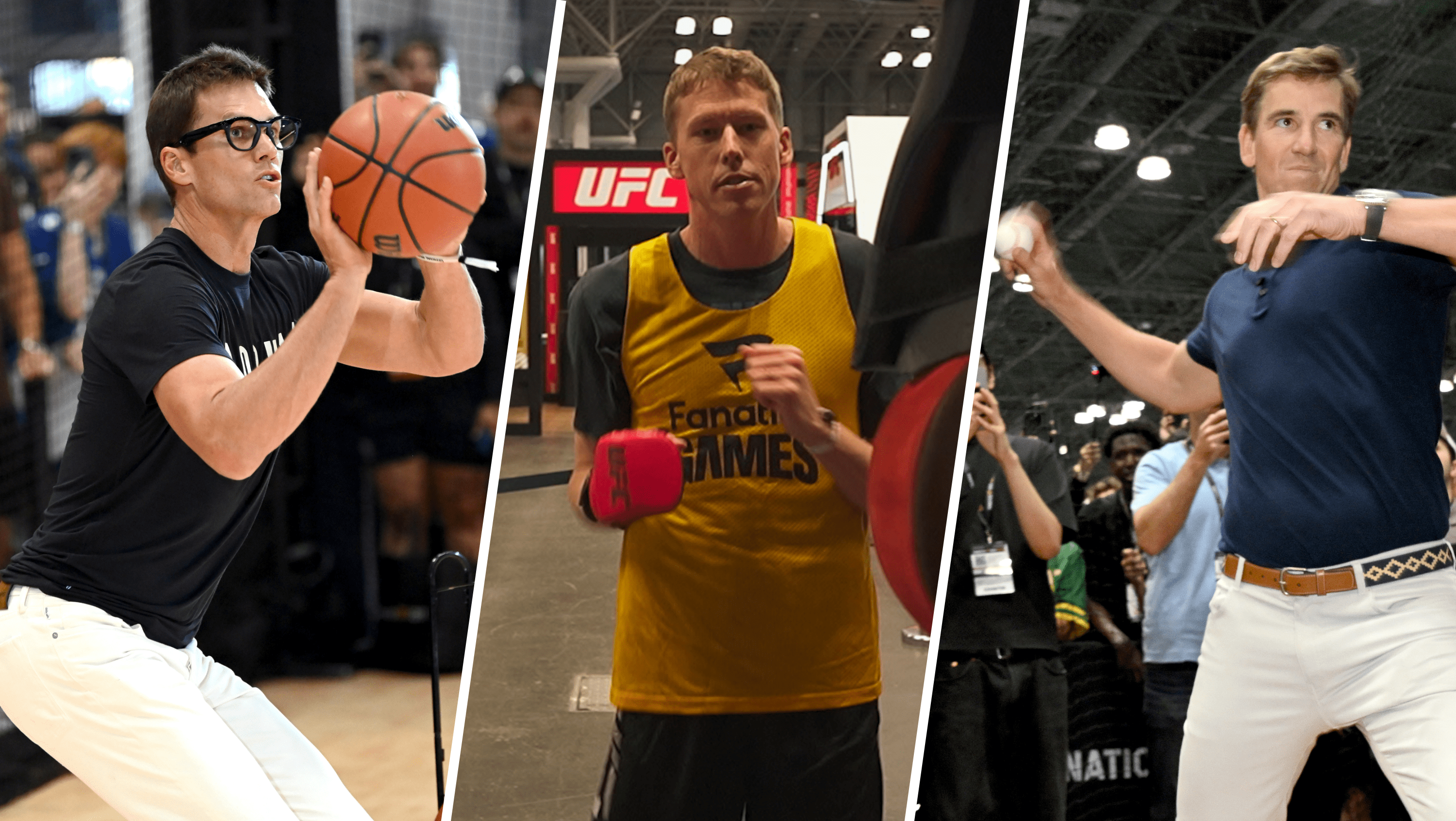 The competition — being held at Fanatics Fest in New York City — includes MLB pitching accuracy, NHL slapshot accuracy, NFL passing skills, an NBA shooting competition, a FIFA goal-scoring shootout, a UFC striking challenge, golf accuracy and a WWE entrance contest.